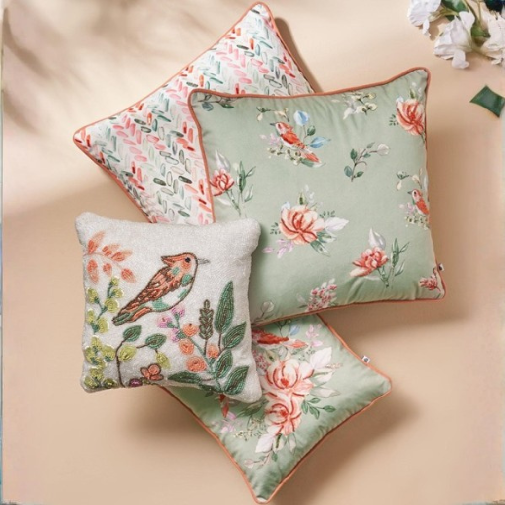 Our cushions are thoughtfully designed to bring together comfort, craftsmanship, and visual appeal. From embroidered florals to refined textures, each piece is developed with attention to fabric quality, colour harmony, and detailing—adding warmth and character to modern interiors.